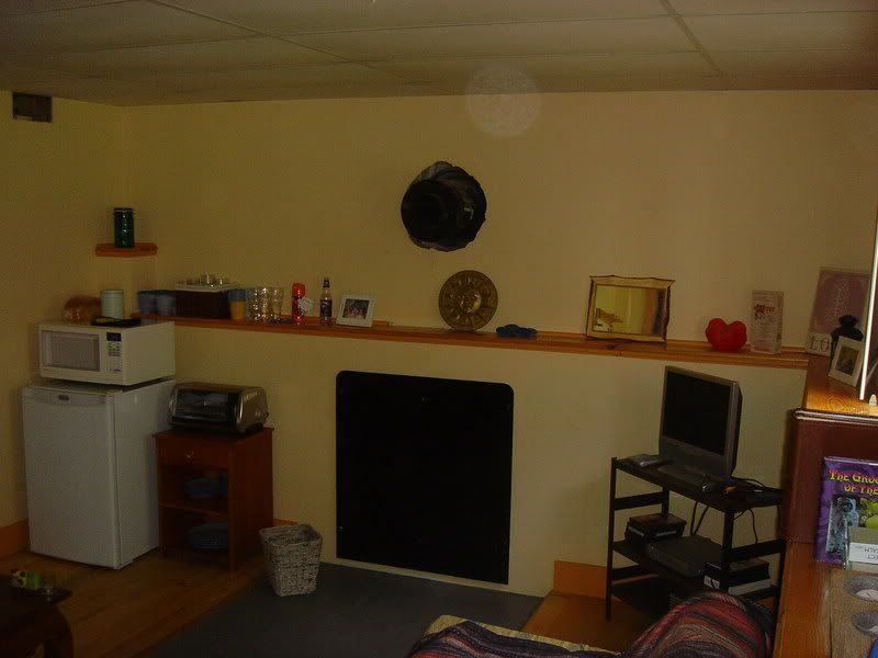 Hier wat fotos; het lijkt donkerder dan het is .. de ruimte is lichtgeel geverfd: